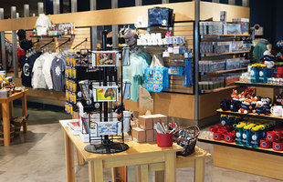 An open layout helps customers easily find souvenirs at the Frontiers of Flight Museum store.