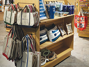 Name-drop totes help customers bag souvenirs at Independence Seaport Museum.